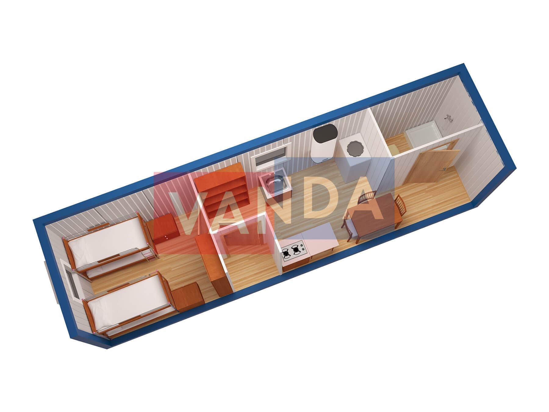 Металлическая бытовка с кухней в тамбуре 5,85 x 2,4 - Вагонка деревянная